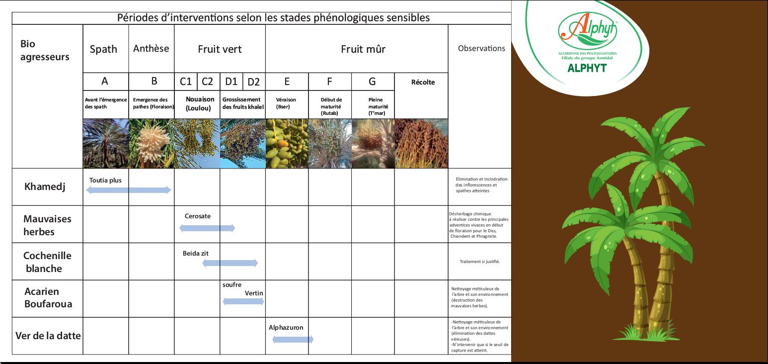 L’agriculture fait face à des risques climatiques, sanitaires et environnementaux qui peuvent avoir des conséquences sur la viabilité des exploitations. Pour cela, L’ALGÉRIENNE DES PHYTOSANITAIRES aide via ses médias les agriculteurs à gérer au mieux leurs exploitations. Ainsi, elle offre à travers ses calendrier de traitement une meilleure utilisation de produits qui permet d’accroître la production et de minimiser ainsi les pertes.